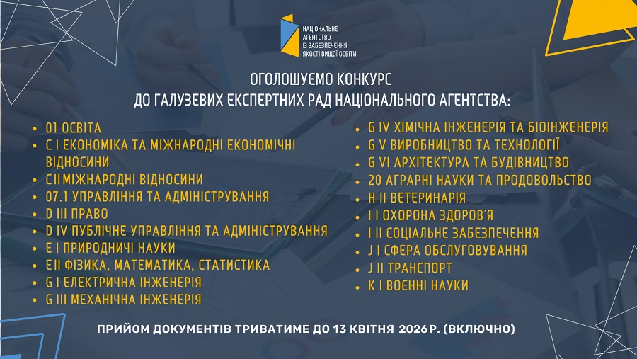 (24.03.2026, протокол № 5) оголошено конкурс до галузевих експертних рад