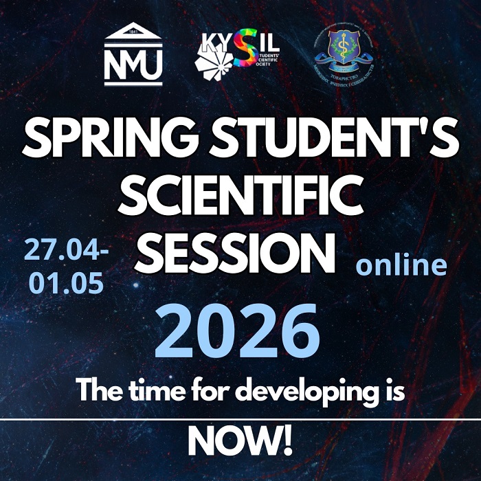 Студентське наукове товариство імені О. А. Киселя та Товариство молодих вчених і спеціалістів Національного медичного університеті імені О. О. Богомольця запрошує на «Весняну наукову сесію 2026» – простір, де молода генерація вчених розкриває потенціал сучасної медицини. Конференція відбудеться з 27 квітня по 1 травня 2026 року в онлайн–форматі. Подача наукових робіт до 15 квітня включно.