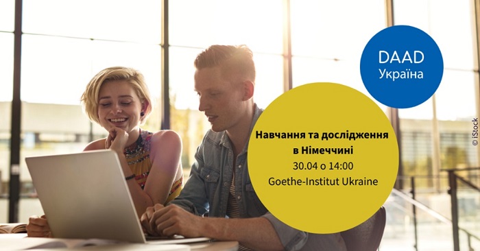 30 квітня в бібліотеці Goethe-Institut Ukraine відбудеться презентація про деталі та нюанси навчання, дослідження та отримання стипендії в Німеччині. Учасники дізнаються про широкий спектр освітніх можливостей у Німеччині.  До участі запрошуються студенти та аспіранти. Вхід вільний.