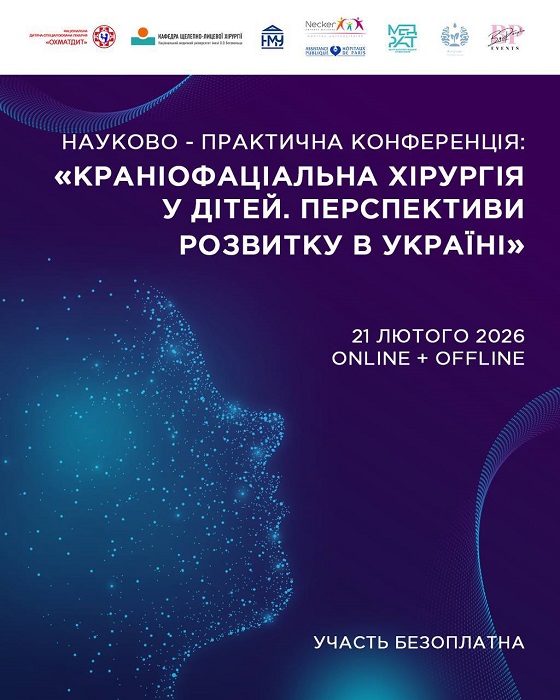 21 лютого відбудеться науково-практична конференція «Краніофаціальна хірургія у дітей. Перспективи розвитку в Україні». Захід відбудеться у змішаному форматі. На заході обговорюватимуть сучасні підходи до лікування краніофаціальної патології у дітей, а фахівці представлять клінічний досвід та окреслять перспективи розвитку цього напряму в Україні. За участь у заході передбачено нарахування балів безперервного професійного розвитку (БПР).