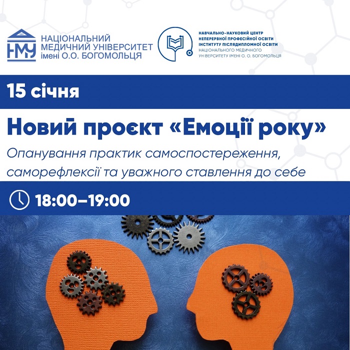 Новий проєкт «Емоції року» запроваджує Навчально-науковий центр неперервної професійної освіти Інституту післядипломної освіти Національного медичного університету імені О.О. Богомольця. Заняття у групі самоспостереження будуть корисними для всіх, хто прагне краще зрозуміти себе, навчитися помічати й проживати свої емоції усвідомлено та екологічно. Реєстрація триватиме до 15 січня.