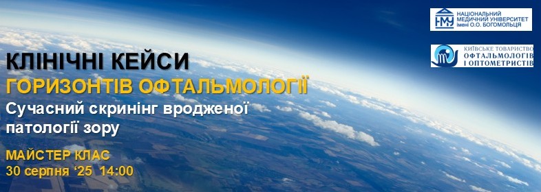 30 серпня відбудеться майстер-клас «Клінічні Кейси Горизонтів Офтальмології. Сучасний скринінг вродженої патології зору». Захід, що відбудеться у змішаному форматі, організовують фахівці кафедри офтальмології та оптометрії Інституту післядипломної освіти та кафедри офтальмології Національного медичного університету імені О.О. Богомольця за підтримки громадської організації «Київське товариство офтальмологів і оптометристів». Участь у заході безоплатна, запрошуються практикуючі лікарі.