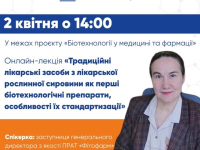 (УКР) Запрошуємо на четверту зустріч циклу лекцій «Біотехнології у медицині та фармації»