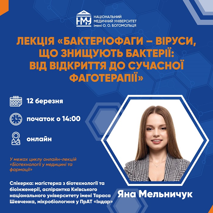 (УКР) 12 березня відбудеться черговий захід проєкту «Біотехнології у медицині та фармації»