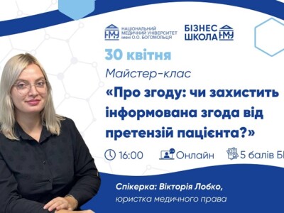 (УКР) Бізнес-школа НМУ запрошує на майстер-клас «Про згоду: чи захистить інформована згода від претензій пацієнта?»