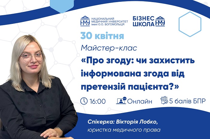(УКР) Бізнес-школа НМУ запрошує на майстер-клас «Про згоду: чи захистить інформована згода від претензій пацієнта?»