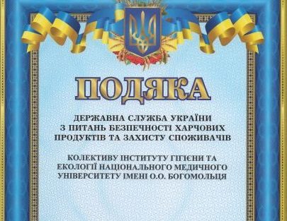 (УКР) ІНСТИТУТ ГІГІЄНИ ТА ЕКОЛОГІЇ НМУ НАГОРОДЖЕНО ГРАМОТОЮ ДЕРЖАВНОЇ СЛУЖБИ УКРАЇНИ З ПИТАНЬ БЕЗПЕЧНОСТІ ХАРЧОВИХ ПРОДУКТІВ ТА ЗАХИСТУ СПОЖИВАЧІВ