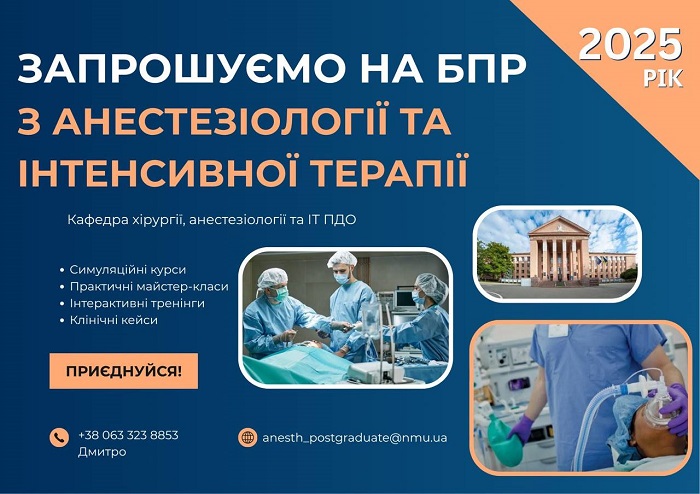 (УКР) Кафедра хірургії, анестезіології та інтенсивної терапії післядипломної освіти запрошує на тренінги БПР