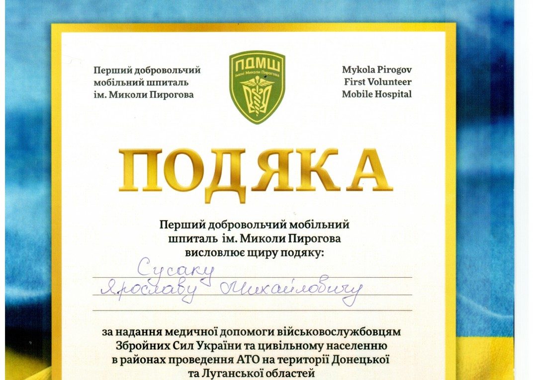 (УКР) ПОДЯКА ЗА НАДАННЯ МЕДИЧНОЇ ДОПОМОГИ В РАЙОНАХ ПРОВЕДЕННЯ АТО