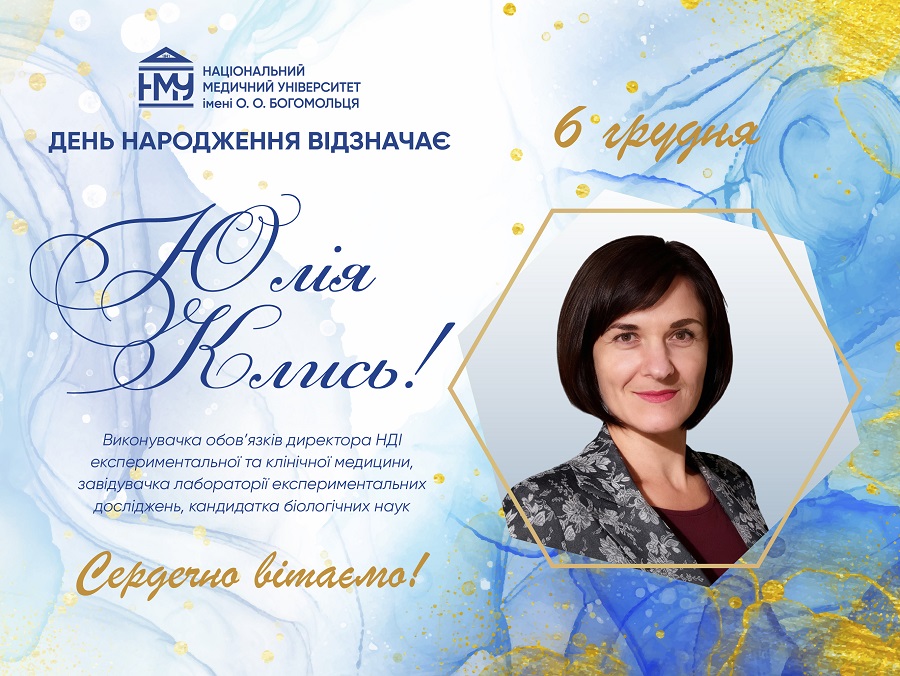 Вітаємо з Днем народження в.о. директора НДІ експериментальної та клінічної медицини Юлію Клись!