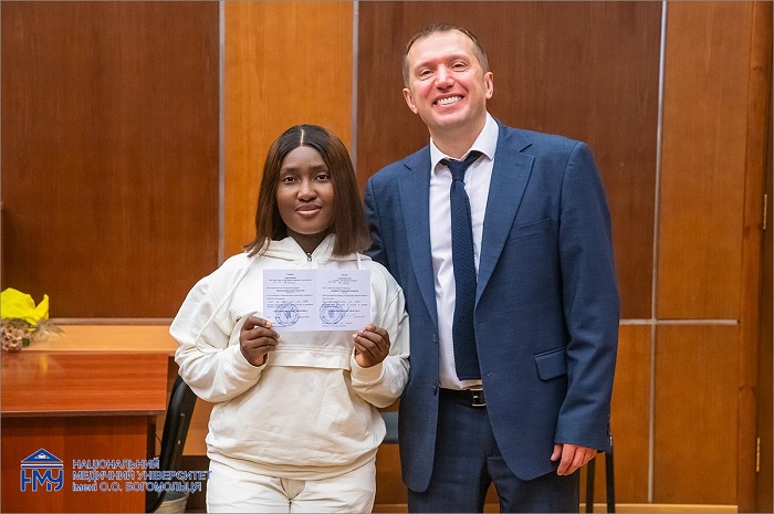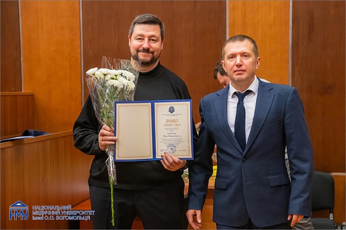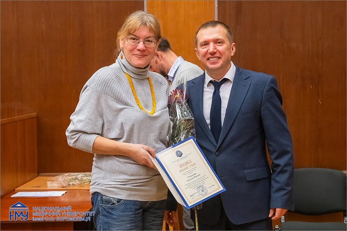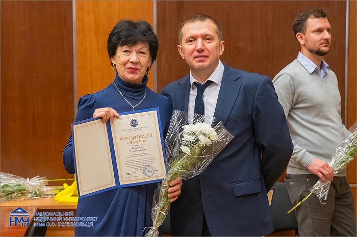 Приємною подією засідання стало відзначення співробітників НМУ імені О.О. Богомольця. Почесні грамоти Вченої ради працівникам вручив ректор Юрій Кучин спільно з головою Профкому співробітників Лілією Яременко. Ще одна знакова подія – вручення документів про закінчення первинної спеціалізації іноземним студентам.