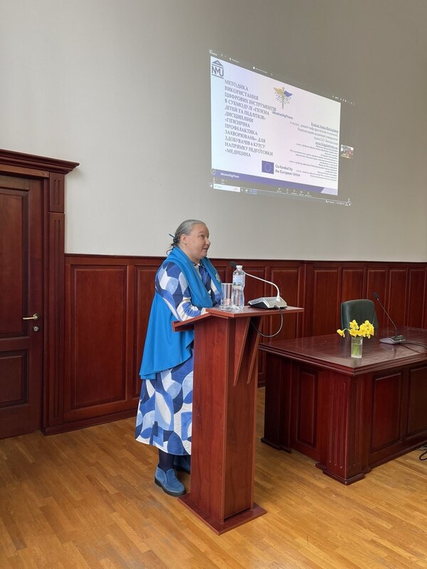 У межах події Анна Благая представила доповідь «Методика використання цифрових інструментів в субмодулі «Гігієна дітей та підлітків» дисципліни «Гігієнічна профілактика захворювань» для здобувачів 6 курсу напряму підготовки «Медицина». Під час виступу доцентка висвітлила практичний досвід інтеграції сучасних цифрових технологій у підготовку майбутніх лікарів. Особливу увагу вона приділила використанню інтерактивних платформ, симуляційних рішень і цифрового моделювання, як інструментів оптимізації навчального процесу, підвищення залученості студентів та формування професійних компетентностей відповідно до європейських освітніх стандартів.