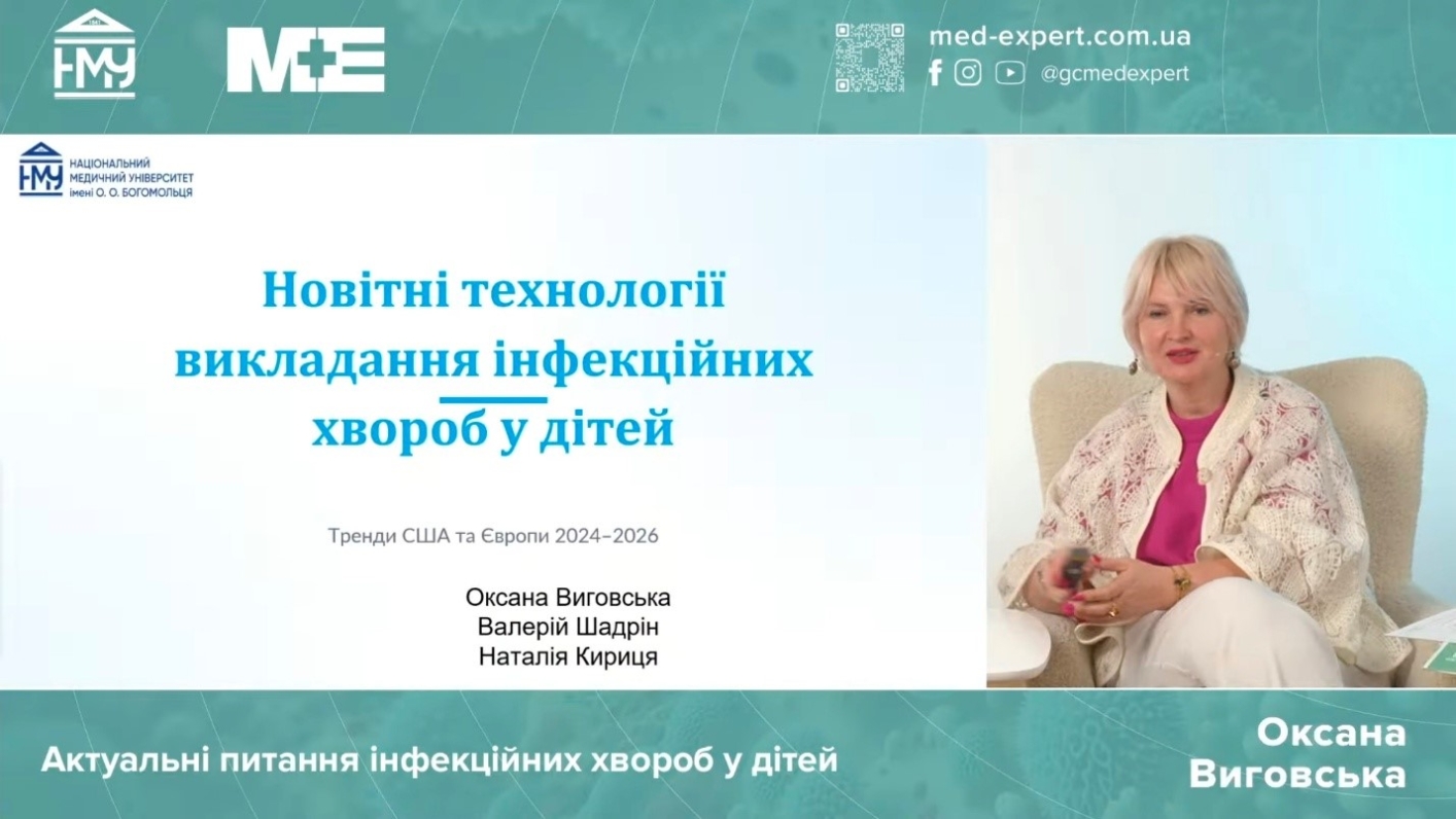 Так, у межах блоку «Інновації в медичній освіті» особливу увагу аудиторії привернула доповідь завідувачки кафедри дитячих інфекційних хвороб Оксани Виговської. У своєму виступі вона детально зупинилася на питанні трансформації медичної освіти в умовах цифровізації, акцентувала на важливості поєднання класичних клінічних підходів із сучасними інтерактивними методиками навчання. Професорка докладно розповіла про новітні технології викладання, що впроваджуються на кафедрі. У другій програмній доповіді вона зупинилася на питаннях ментального здоров’я у дітей під час інфекційних захворювань та після них. Фахівчиня окреслила «червоні прапорці» для лікарів-педіатрів, лікарів загальної практики – сімейної медицини, які заслуговують особливої уваги до стану фізичного та ментального здоров’я хворих дітей, потребують залучення медичного психолога, психотерапевта, іноді невролога та психіатра. Окрім освітнього аспекту, завідувачка кафедри виступила модераторкою ключових секцій конференції, де курувала дискусії щодо складних випадків дитячих інфекцій, підкреслила необхідність мультидисциплінарного підходу та психологічної підтримки пацієнтів, їхніх родин у процесі лікування.