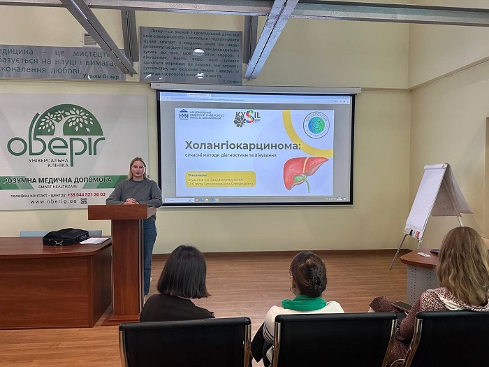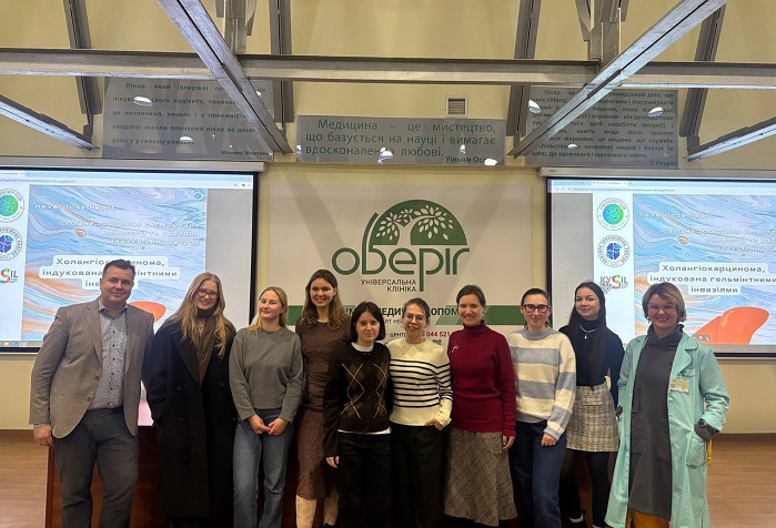 На спільному засіданні студентських наукових гуртків (СНГ) кафедри онкології та кафедри інфекційних хвороб Національного медичного університету імені О.О. Богомольця обговорили проблему розвитку холангіокарциноми, індукованої гельмінтними інвазіями. До участі у заході долучилися молоді науковці, викладачі, лікарі-практики.