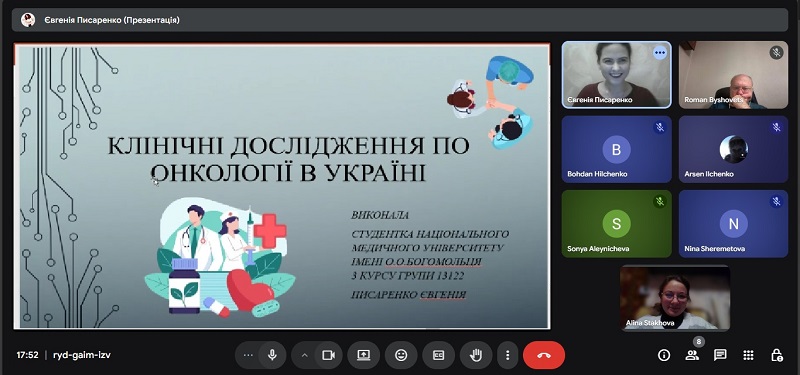 Особливості та правила організації і проведення клінічних досліджень в Україні та світі розглянули на засіданні студентського наукового гуртка (СНГ) кафедри пропедевтики внутрішньої медицини №2 Національного медичного університету імені О.О. Богомольця. Студенти-гуртківці комплексно опрацювали тему клінічних досліджень, розглянули необхідність створення нових, безпечних та ефективних методів лікування, які допомагають долати різні захворювання, підготували та виступили зі змістовними доповідями.