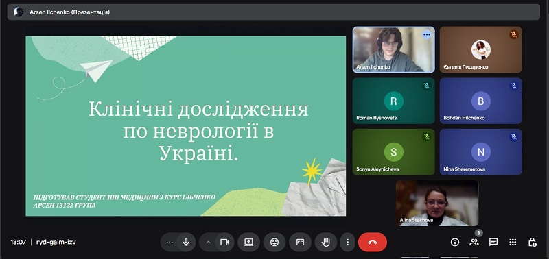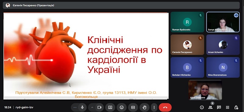 Під час засідання доповіді на актуальні теми підготували також студенти 3 курсу Навчально-наукового інституту медицини. Так, Євгенія Писаренко зосередила увагу на лікуванні пацієнтів із раком шлунку, множинною мієломою, лімфомами та раком сечового міхура і сечовивідних шляхів. Арсен Ільченко зробив акцент на терапії розсіяного склерозу, хронічної мігрені та ранньої стадії хвороби Паркінсона. Своєю чергою Софія Алейнічева та Єва Кириленко розкрили в доповіді тему досліджень фіксованих комбінацій (препарати, які поєднують два або більше діючих компонента в одній таблетці) під час терапії ішемічної хвороби серця та серцевої недостатності.