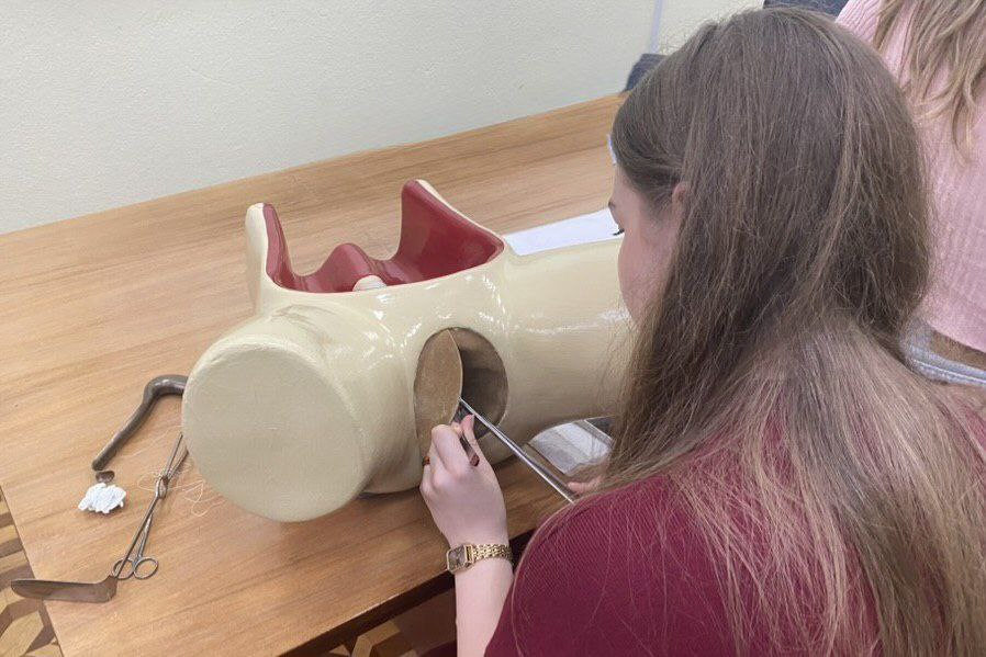 Окрім того, гуртківці удосконалили навички ушивання розривів промежини та шийки матки під керівництвом фахівчинь кафедри акушерства і гінекології № 3 НМУ – доцентки Тетяни Ковалюк та асистентки Антоніни Чеботарьової.