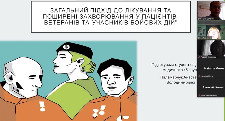 А студентка 5-го курсу Анастасія Паламарчук свою презентацію присвятила проблемам загального  підходу до лікування поширених захворювань пацієнтів-ветеранів та учасників бойових дій.