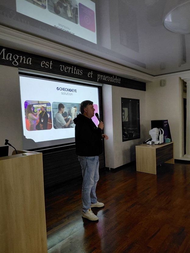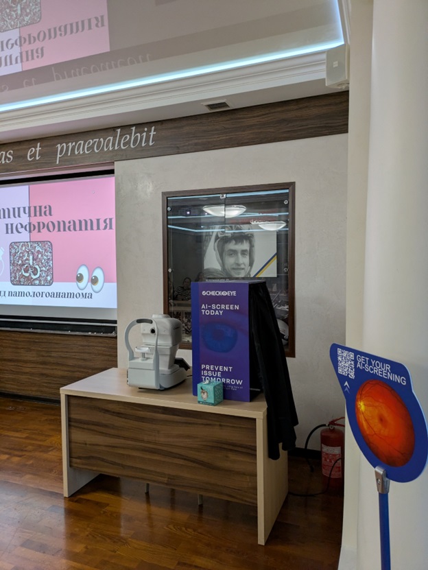 Окрім того, під час практичної роботи студенти ознайомитися з принципами функціонування платформи CheckEye та особливостями обробки зображень ШІ-алгоритмами. Отримали можливість попрацювати з фундус-камерою і опанувати базові навички отримання знімків очного дна. Учасники студентського наукового гуртка також пройшли скринінг і одержали автоматично сформовані результати діагностики, що дозволило на практиці оцінити можливості сучасних цифрових технологій у офтальмології. Практична частина стала цінним доповненням до наукових доповідей та поєднала набуті теоретичні знання з реальними клінічними навичками.