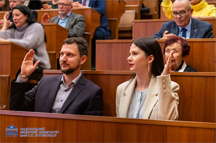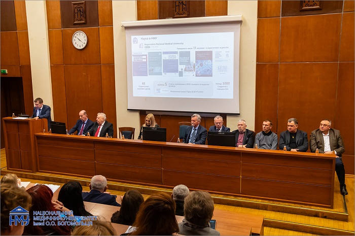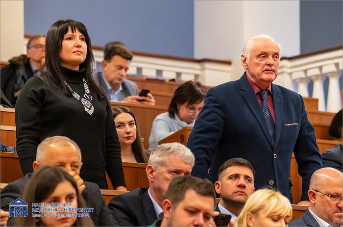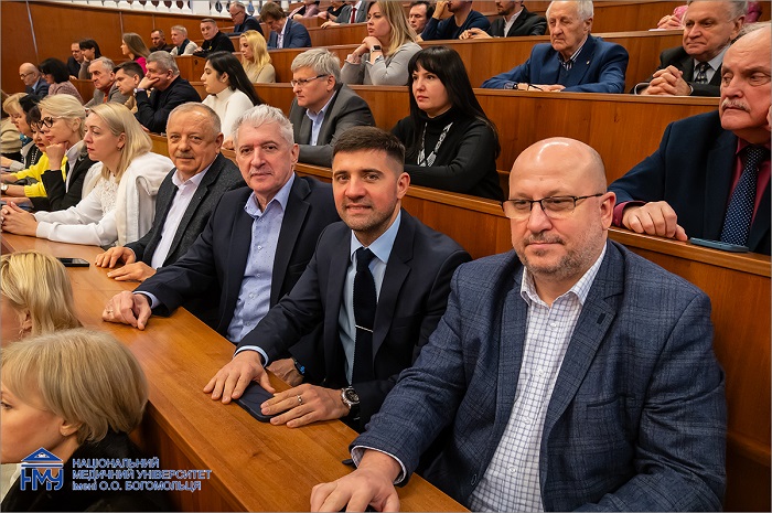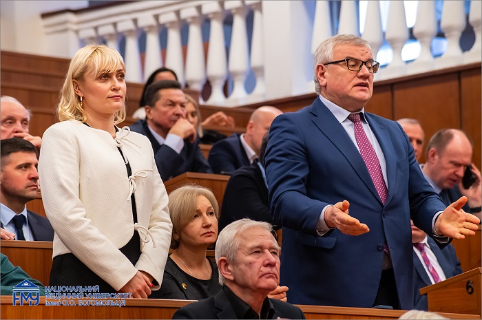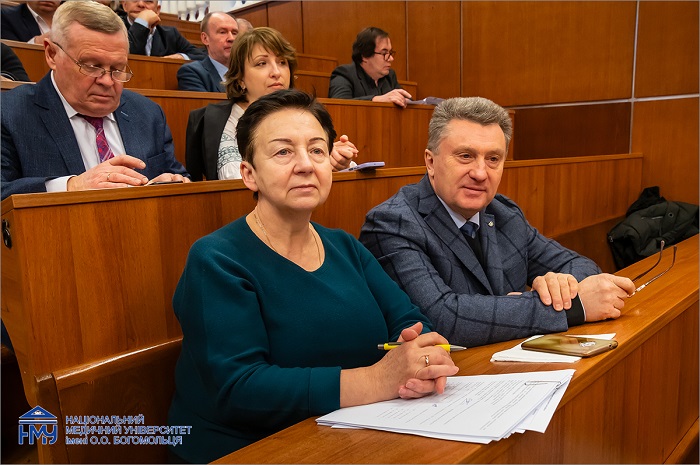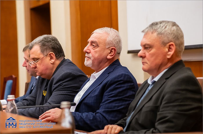 У спільному засіданні взяли участь перший заступник міністра охорони здоров’я Сергій Дубров, Президент НАМН України Віталій Цимбалюк, члени Наглядової ради Університету – віцепрезидент НАМН України Дмитро Заболотний, академік НАМН України Юрій Антипкін, генеральний директор медичного центру «Універсальна клініка «Оберіг» Віктор Рибчук, директор Дипломатичної академії України Геннадій Надоленко, український журналіст, політик, громадський діяч Юрій Артеменко, українська акторка та телеведуча, Народна артистка України Ольга Сумська, український футболіст і тренер Віктор Мороз, а також керівництво Університету – ректор Юрій Кучин, перший проректор Олександр Науменко, проректори Олександр Канюра, Олег Власенко, Сергій Земсков і Володимир Титикало, декани факультетів, директори інститутів, завідувачі кафедр, керівники структурних підрозділів, студенти.