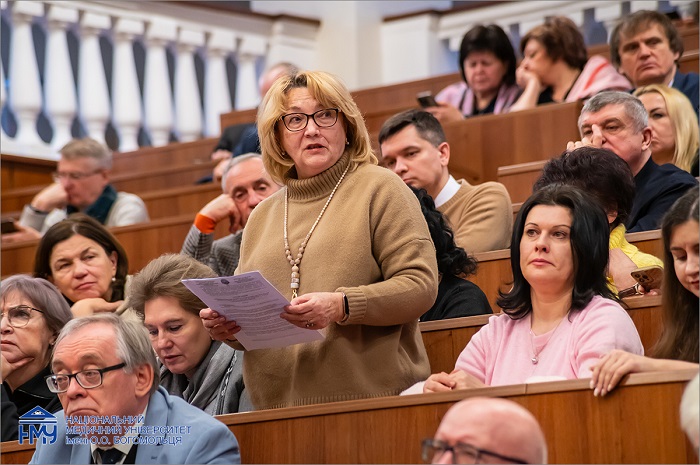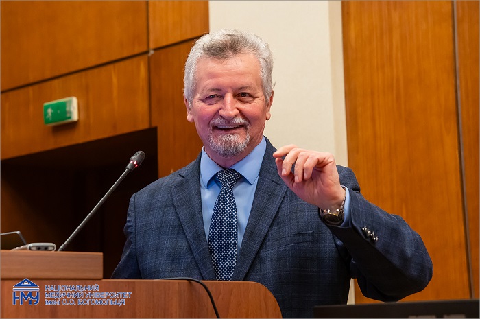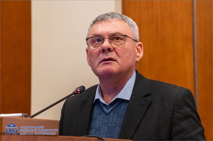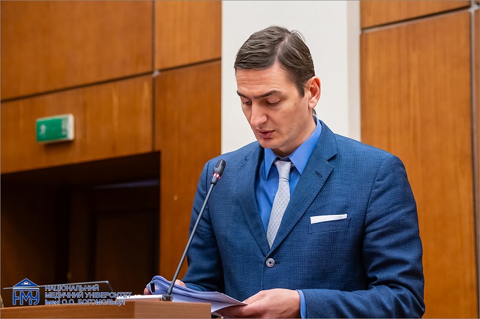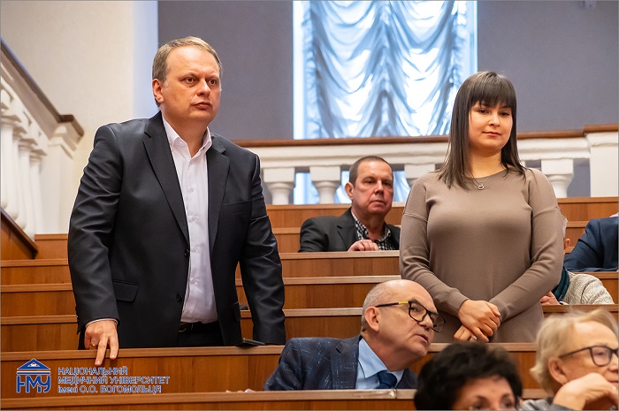Юрій Кучин представив звіт про діяльність Університету, в якому йшлося про результати, успіхи та досягнення колективу в році, що минає. Так, під час вступної кампанії НМУ вкотре став лідером із популярності серед абітурієнтів серед закладів вищої медичної освіти: для вступу Університет обрали понад 1500 майбутніх медиків. У межах міжнародної співпраці та академічної мобільності були укладені нові договори та угоди. Попри реалії сьогодення, завдяки спільним зусиллям команди на медичних факультетах відбулася гармонізація програм із потребами реального сектору надання медичних послуг, сформовано чітку програму клінічної та симуляційної підготовки, у програми інтегровано кращі практики інформальної та неформальної освіти. У Навчально-науковому центрі медичних симуляцій проведено міжнародну сертифікацію, а у Тренінговому центрі сімейної медицини проводиться підготовка лікарів за програмою ВООЗ. В Інституті громадського здоров’я та профілактичної медицини створені сертифікатні програми громадського здоров’я та управління, гармонізовані з міжнародними, а в Інституті психічного здоров’я НМУ – сертифікатні програми ментального здоров’я, також гармонізовані з міжнародними (mhGAP). Окрім того, розширено партнерство з центрами надання реабілітаційної допомоги, відбулася акредитація за новими програмами (терапія мови і мовлення, сурдологія, обмеження зору).