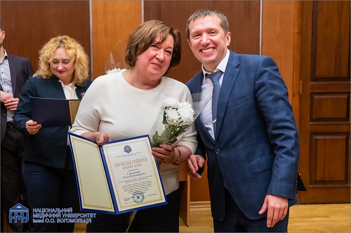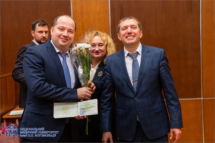 Принагідно, ректор НМУ Юрій Кучин спільно з головою профкому співробітників Лілією Яременко привітали співробітників Університету з ювілеєм та вручили їм Почесні грамоти Вченої ради. У межах засідання вручили дипломи доктора наук та атестати доцента науковцям різних кафедр НМУ імені О.О. Богомольця.