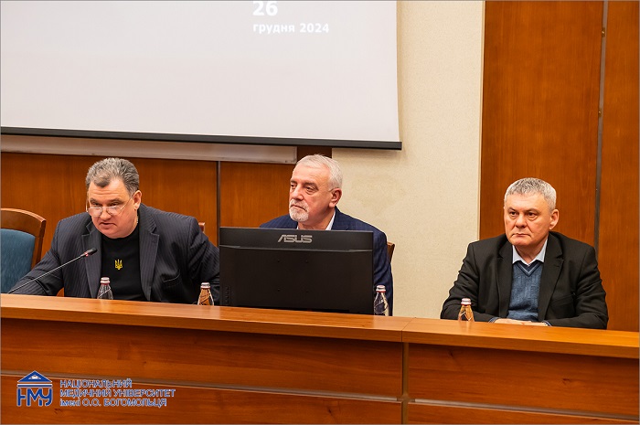 Під час підсумкового та цьогоріч спільного засідання Вченої і Наглядової рад Національного медичного університету імені О.О. Богомольця присутні заслухали доповідь ректора Юрія Кучина про результати діяльності НМУ в 2024 році, звіт про атестацію здобувачів вищої освіти зі спеціальності «Менеджмент», затвердили нові сертифікатні програми, розглянули кадрові та інші важливі питання, що стосуються навчальної та наукової робіт.