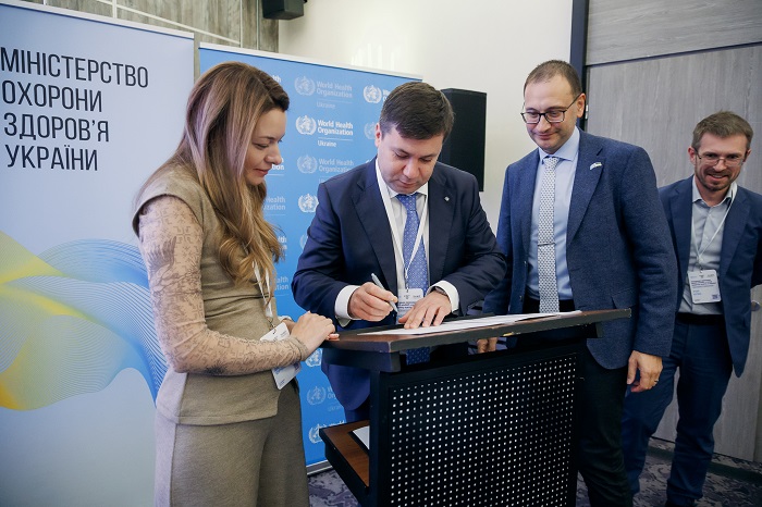 У межах дводенного заходу, що організували ВООЗ та МОЗ, Меморандум підписали представник ВООЗ в Україні д-р Ярно Хабіхт, заступник міністра охорони здоров’я – головний державний санітарний лікар Ігор Кузін, заступник міністра освіти і науки Андрій Вітренко та представники університетів. У заході взяв участь ректор НМУ імені О.О. Богомольця Юрій Кучин і фахівці Навчально-наукового інституту психічного здоров’я на чолі з директором Олегом Чабаном.