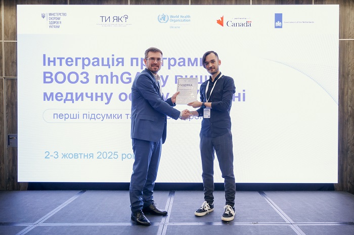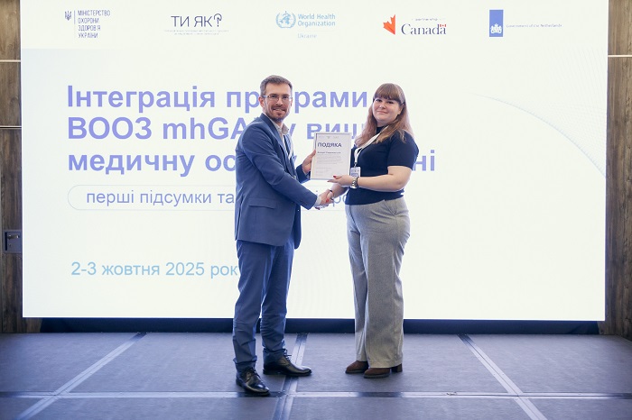 Під час заходу з інтеграції Програми ВООЗ mhGAP (Mental Health Gap Action Programme) у вищу медичну освіту в Україні підсумували перший досвід інтеграції Програми ВООЗ із подолання прогалин у сфері психічного здоров’я на додипломному та післядипломному рівнях, окреслили подальші кроки на рівні університетів. Мета Програми – інтегрувати послуги з підтримки ментального здоров’я до первинної медичної допомоги, щоб підвищити їхню доступність і максимальне охоплення. Запровадження таких послуг у практиці сімейного лікаря не лише збільшує можливості для людей піклуватися про своє психічне здоров’я, а й змінює підхід до надання допомоги, адже психічний і фізичний стан пацієнта оцінюються комплексно. Її реалізація відбувається у межах ініціативи першої леді Олени Зеленської з впровадження Всеукраїнської програми ментального здоров’я «Ти як?».