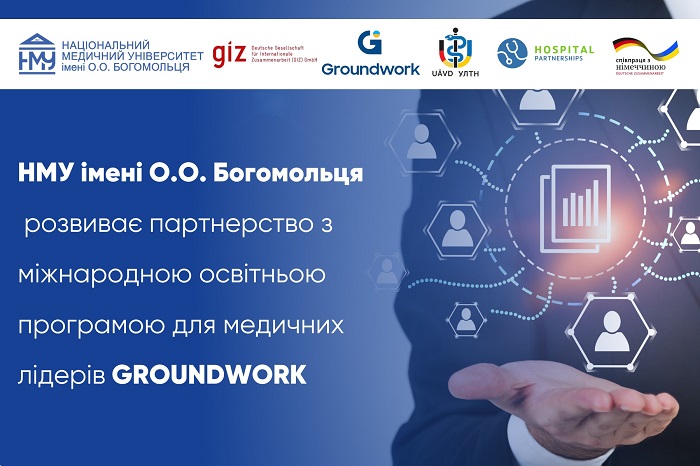 Національний медичний університет імені О.О. Богомольця став партнером та активно долучається до освітньої програми нового покоління для управлінців у сфері охорони здоров’я GROUNDWORK. Ініціатива орієнтована на медичних керівників, які прагнуть впроваджувати інновації та системні зміни в галузі. Проєкт реалізується Українським лікарським товариством у Німеччині у співпраці та за підтримки німецької агенції з розвитку GIZ.