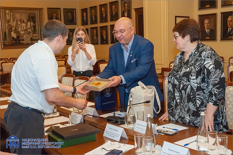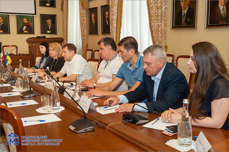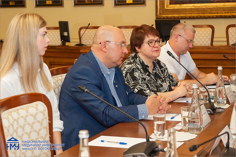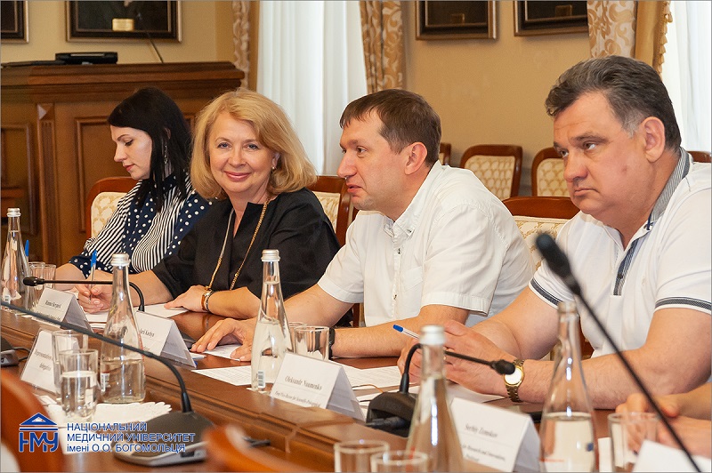 У зустрічі взяли участь заступник Міністра охорони здоров’я України Ірина Микичак, ректор НМУ, професор Юрій Кучин, перший проректор з науково-педагогічної роботи та післядипломної освіти, професор Олександр Науменко, проректор з науково-педагогічної роботи, міжнародних зв’язків та європейської інтеграції, професор Рімма Скрипник, проректор з наукової роботи та інновацій, професор Сергій Земсков, проректор з науково-педагогічної та навчальної роботи, професор Олег Власенко, начальник відділу міжнародних зв’язків, доцент Іванна Саханда та заступник начальника навчально-методичного відділу Інна Кучеренко.