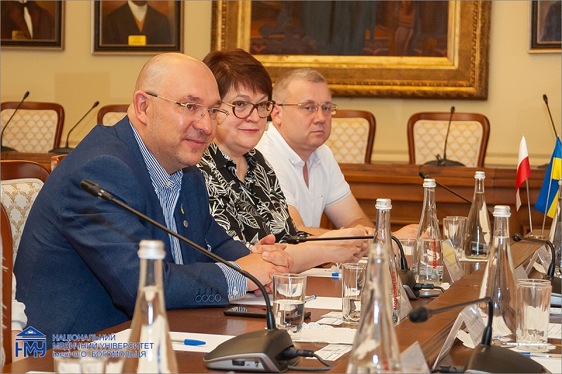 Днями Національний медичний університет імені О.О. Богомольця відвідала делегація з Варшавського медичного університету на чолі з продеканом, хабілітованим доктором Робертом Галонзковським. В рамках візиту відбулася робоча зустріч польських колег і керівництва НМУ щодо поглиблення двосторонньої співпраці.
