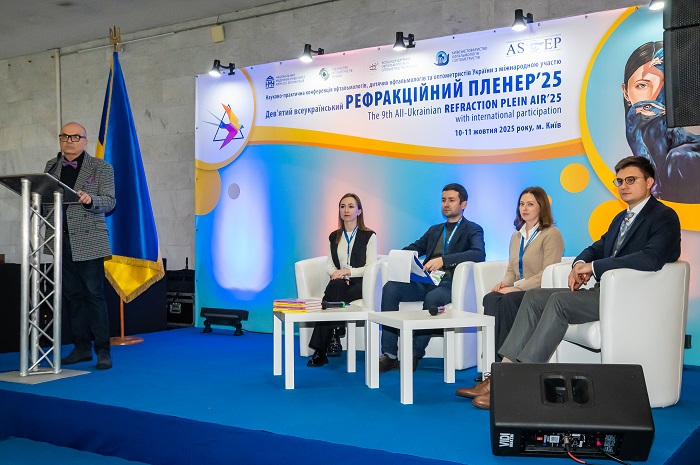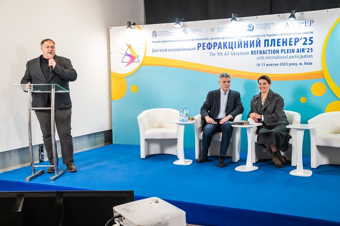 10-11 жовтня 2025 року відбулася науково-практична конференція офтальмологів, дитячих офтальмологів та оптометристів України з міжнародною участю – IX всеукраїнський «Рефракційний пленер’25». Захід об’єднав українських фахівців і колег з Великої Британії, США, Австралії, Індії, Греції та Польщі. В межах конференції відбулося 13 секційних засідань, 11 майстер-класів, 3 сателітних симпозіуми, 2 засідання молодих офтальмологів України, 2 актові доповіді та 2 дискусійні клуби наукових товариств, в яких взяли участь наживо 450 учасників і ще близько 9 тисяч слухачів долучилися онлайн.