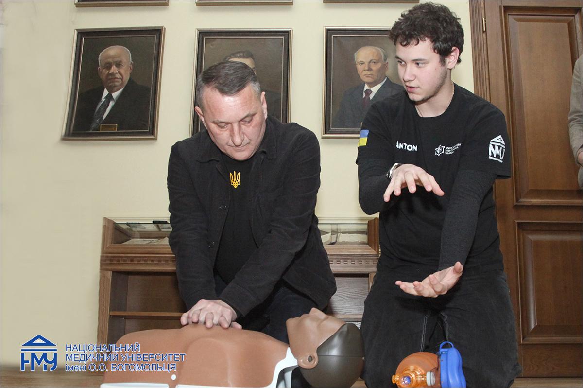 У Національному медичному університеті імені О.О. Богомольця відбувся майстер-клас із базових реанімаційних заходів для співробітників ректорату, які не мають медичної освіти. Навчальний захід з надання домедичної допомоги складався з теоретичної та практичної частин і був присвячений відпрацюванню алгоритмів дій при втраті свідомості, відсутності дихання та вдавленні сторонніми предметами у різних життєвих ситуаціях і для різних категорій постраждалих.