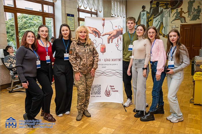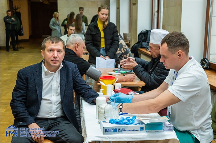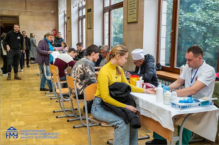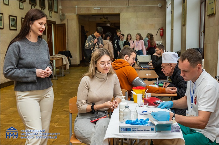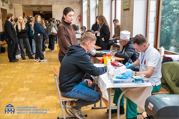 9 жовтня в Національному медичному університеті імені О.О. Богомольця спільно з представниками Головного військового клінічного госпіталю відбулася масштабна донація крові, проведена в межах проєкту «Тиждень свідомості». Захід об’єднав понад 100 співробітників та студентів Університету. Протягом дня донації в НМУ зібрали понад 50 літрів крові для поранених українських захисників.