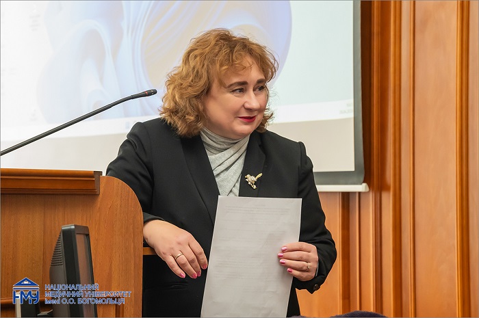 На основних аспектах охорони праці в галузі охорони здоров’я наголосила головна державна інспекторка відділу з питань безпеки праці західного напрямку управління інспекційної діяльності у Київській області Державної служби з питань праці Тетяна Бровченко. Вона нагадала, що в НМУ імені О.О. Богомольця затверджена Політика психосоціальної підтримки працівників на робочому місці, яка спрямована на підтримку кожного працівника Університету, забезпечення робочого середовища, вільного від переслідувань, дискримінації, створення здорових умов праці, формування культури турботи про фізичне і ментальне здоров’я. Наш Університет став першим закладом вищої медичної освіти, де реалізується такий проєкт ментальної підтримки колег, ініціатором якого виступили у Профкомі співробітників НМУ. А головна інспекторка відділу гігієни праці та атестації робочих місць за умовами праці Держпраці Наталя Носик акцентувала на професійних захворюваннях у медичній сфері й атестації робочих місць і лабораторних дослідженнях умов праці.