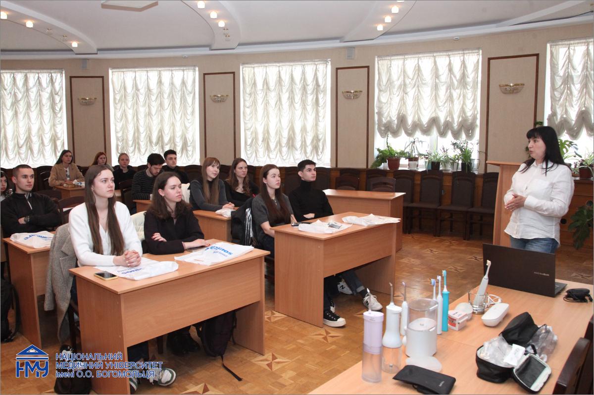 До Днів Інституту стоматології також долучилися партнери – представники компанії «Philips Sonicare», які провели для здобувачів майстер-клас на тему «Професійний догляд в домашніх умовах з Philips Sonicare» та ТОВ «Учбовий медичний центр», викладачка якого Анжеліка Ковшар навчала слухачів сучасним підходам та особливостям реставрації жувальної групи зубів.