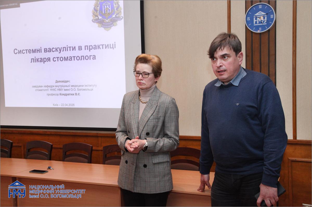 Фахівці кафедри внутрішньої медицини Інституту стоматології НМУ імені О.О. Богомольця також долучились до заходу зі змістовними і цікавими для майбутніх стоматологів лекціями об’єднаних темою «Внутрішня медицина та стоматологія: міждисцинлінарні виклики». Їх провели завідувач кафедри, професор Віталій Кондратюк, професорка Еліна Крістіан, доцент Олег Бичков, асистенти Олександр Алексійчука та Аліна Стахова.