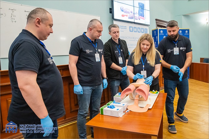 Так, на базі Навчально-наукового центру медичних симуляцій нашого Університету вже неодноразово проводили тренінги з базової екстреної медичної допомоги, розроблені Всесвітньою організацією охорони здоров’я, Міжнародним комітетом Червоного Хреста та Міжнародною федерацією екстреної медицини за підтримки Міністерства охорони здоров’я України. 16 та 17 грудня відбувся черговий тренінг, новий формат якого розробила Міжнародна федерація екстреної медицини. На сьогодні в Україні є національний пул тренерів, який складається з 96 осіб, із них у заході в НМУ взяли участь 47 тренерів різної кваліфікації. Для них провели демонстрацію тренінгу для тренерів оновленого формату, який покриває всі аспекти тренерської майстерності.
