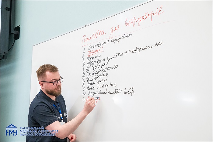 Учасникам детально розповіли про організацію процесу навчання тренерів у новому форматі, щоб кожен міг досягти спільних освітніх цілей згідно з рекомендаціями ВООЗ, з відповідними порадами для фасилітаторів. Присутні взяли участь в інтерактивних лекціях, де отримували відповідні завдання, відпрацьовували практичні клінічні сценарії та практичні навички у малих групах із використанням різноманітного сучасного навчального обладнання, манекенів і симуляційних інструментів.