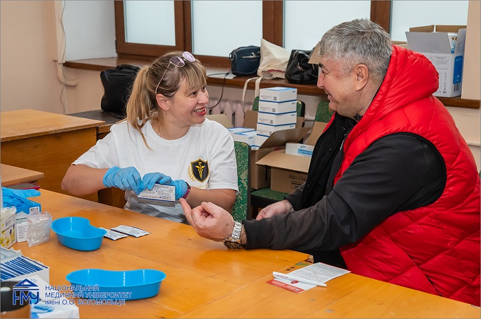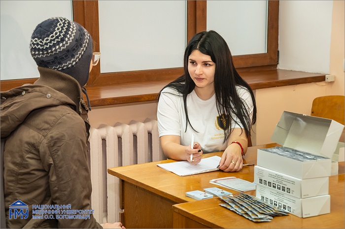 Одним із перших експрес-аналіз пройшов проректор з науково-педагогічної та лікувальної роботи Олександр Канюра. Він зазначив, що відділ лікувально-консультативної роботи нашого Університету також долучився до організації заходу спільно з Профкомом студентів НМУ та КМКЛ №5.