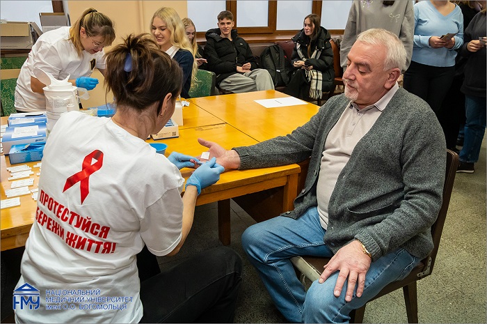 До Всесвітнього дня боротьби зі СНІДом, 1 грудня, у Національному медичного університету імені О.О. Богомольця організували профілактичні заходи для студентів і співробітників. Усі охочі могли пройти безоплатне тестування на ВІЛ і дотичні захворювання, взяли участь у просвітницькій лекції «ВІЛ у фокусі сучасної медицини» від AIDS Healthcare Foundation (AHF) – найбільшої у світі неурядової організації, що працює у сфері ВІЛ/СНІД, а ініціатором заходів стали активісти Профкому студентів за підтримки Київської міської клінічної лікарні (КМКЛ) №5.