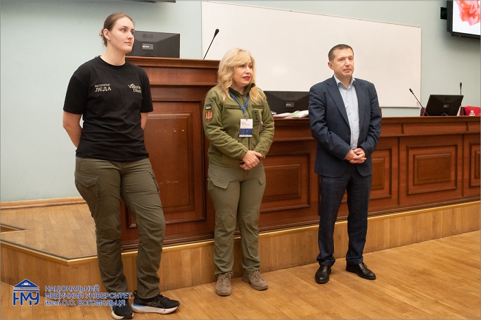 Ще одним великим заходом Тижня став лекторій «Медицина у воєнний час» від провідних військових лікарів, які ділилися з учасниками своїми знаннями та досвідом. Зокрема, лікар-травматолог, ад’юнкт кафедри військової хірургії Української військово-медичної академії Михайло Денисюк розкрив сучасні підходи до лікування вогнепальних переломів передпліччя; завідувач відділу мікросудинної, пластичної та відновлювальної хірургії ННЦ хірургії та трансплантології імені О.О. Шалімова Євген Симулик презентував унікальні клінічні випадки реконструкції кінцівок після вибухових ушкоджень; завідувачка кафедри оториноларингології НМУ, професорка Юлія Дєєва розібрала складні випадки лікування бойових травм голови та шиї; лікар-ортопед-травматолог, аспірант кафедри хірургії, анестезіології та інтенсивної терапії післядипломної освіти Сергій Деркач представив комплексний підхід до менеджменту вогнепальних травм. Своєю чергою деканка факультету Наталія Козак розповіла про особливості вступу до Української Військово-медичної академії, а випускник НМУ та Української військово-медичної академії, лікар-хірург, дійсний військовослужбовець Микола Пасько виступив із мотиваційною промовою.