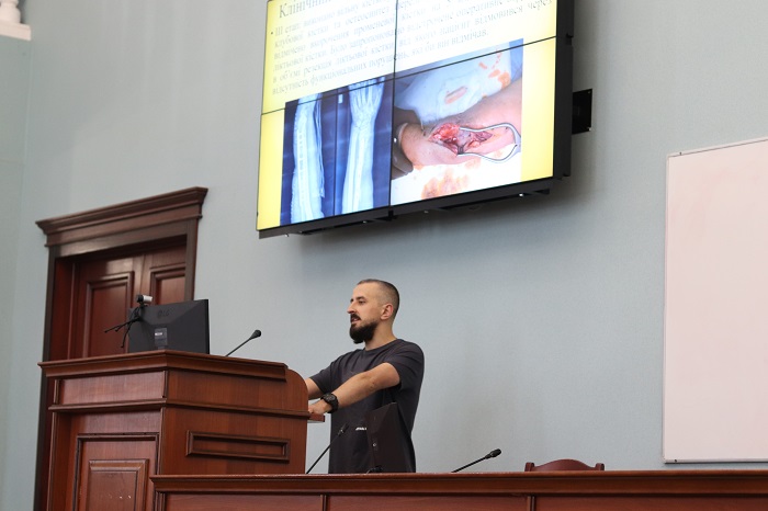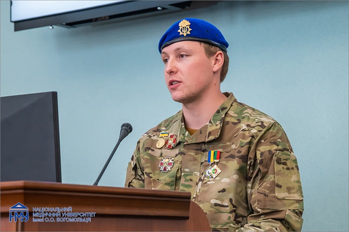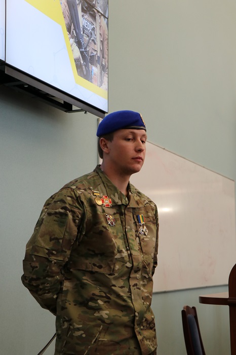 Також на лекторії виступив захисник Маріуполя, військовий, який понад 2,5 роки провів у російському полоні, студент факультету підготовки лікарів для Збройних Сил України Ростислав Швачич. Історія Ростислава – живий приклад мужності та незламності нашої нації. Після полону, жахів війни, боротьби з ПТСР він повернувся до навчання, аби стати Лікарем.