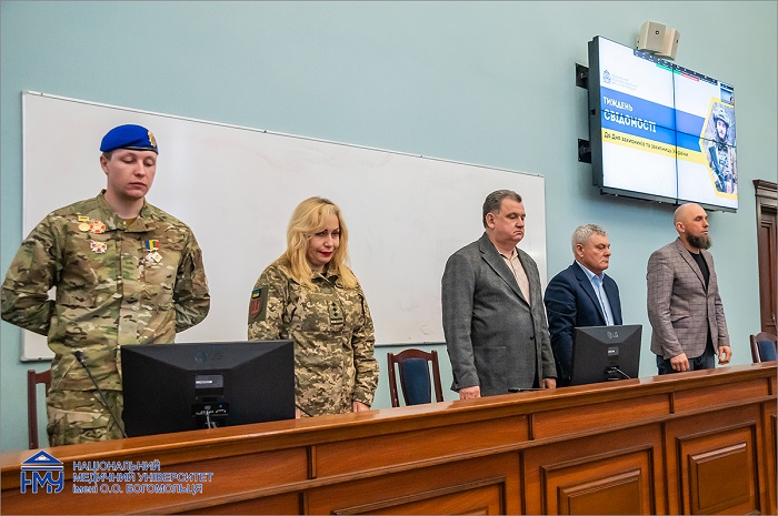 До участі у заходах долучилися ректор Юрій Кучин, перший проректор з науково-педагогічної роботи та післядипломної освіти Олександр Науменко, проректор з науково-педагогічної та навчальної роботи Олег Власенко, деканка факультету підготовки лікарів для Збройних Сил України Наталія Козак, директор ННІ стоматології НМУ Андрій Копчак, декани та студенти різних факультетів нашого Університету.