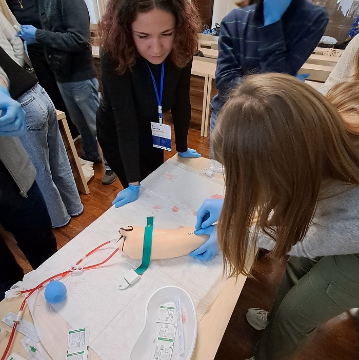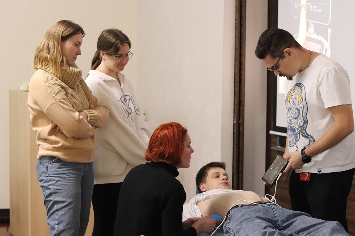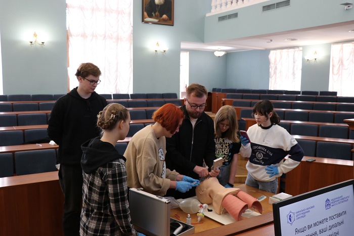 У межах «Тижня свідомості» відбулися семінар з гемотрансфузії, під час якого студенти опановували тонкощі переливання крові в умовах воєнного стану, практичний тренінг з менеджменту тяжких дихальних шляхів та конікотомії, тренінг з постановки периферичного венозного доступу – навику, який щодня рятує життя на передовій. Велику увагу приділили і психосоціальній підтримці – для учасників організували семінар «Психосоціальна підтримка в період горювання», де вчили, як знаходити слова втіхи, де слова вже безсилі, як допомогти пережити горе та знайти сили жити далі. Чимало нових практичних знань отримали учасники майстер-класу із лікування вогнепальних травм щелепно-лицевої ділянки та практичного тренінгу із eFAST-протоколу – сучасного протоколу УЗД для виявлення критичних станів.