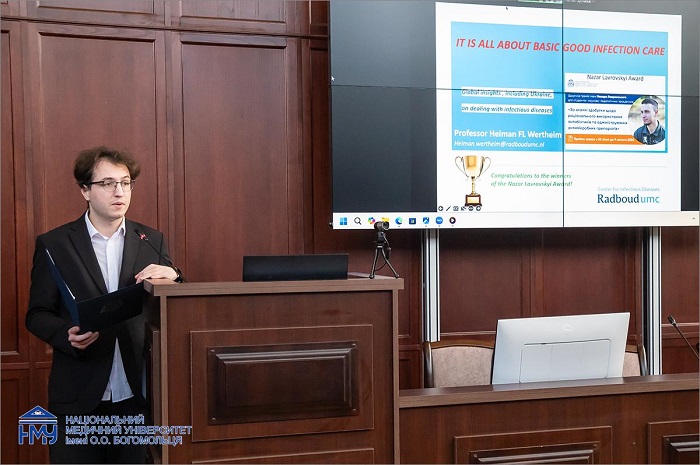 У вітальному слові, звертаючись до науковців, викладачів, студентів, лікарів-практиків, які були присутні на урочистій події, ректор НМУ, професор Юрій Кучин зауважив, що тема раціонального та обґрунтованого використання антибактеріальної терапії, якій присвятив своє професійне життя Назар Лавровський, потребує ще більшої уваги серед фахівців галузі охорони здоров’я. Справа Назара і започаткована в пам’ять про нього премія покликані підвищити професійну культуру та обізнаність медичних працівників, покращити якість лікування пацієнтів. Вклад Назара Лавровського у медицину та оборону України назавжди залишиться в історії, а премія є символом його відданості науці та військовій медицині.