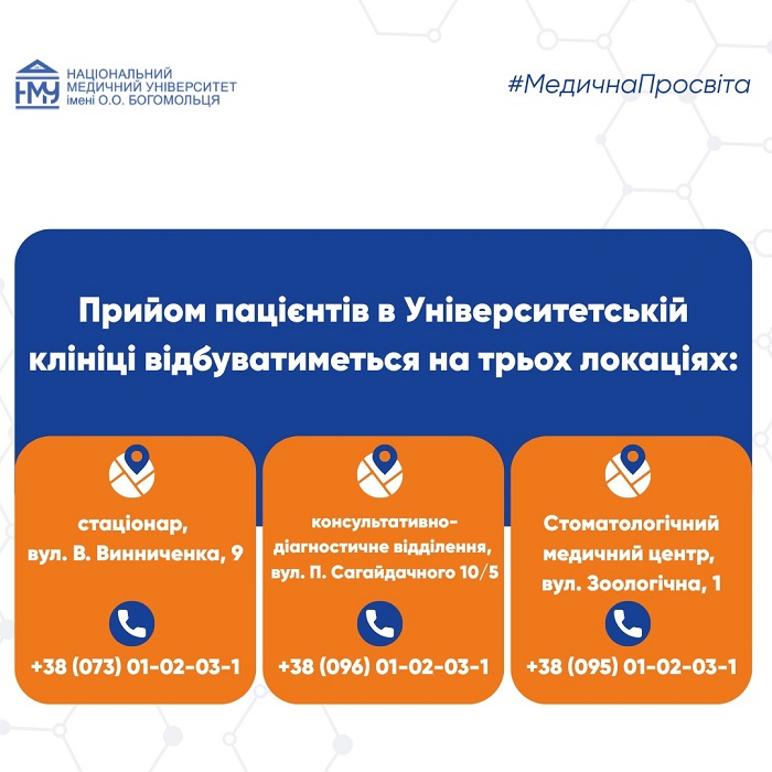 – консультативно-діагностичне відділення, вул. П. Сагайдачного, 10/5, тел.:+38 (096) 01-02-03-1;