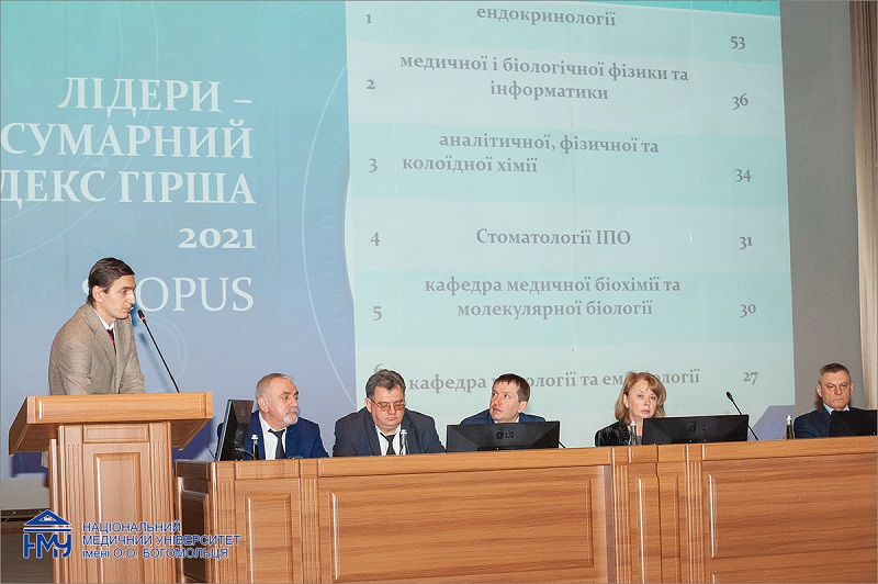 Після перерви на голосування було заслухано і ухвалено звіт про наукову діяльність у 2021 році та пріоритетні напрямки і перспективи розвитку наукової діяльності в НМУ, поточні та перспективні завдання підготовки науково-педагогічних кадрів, а також пропозицію щодо затвердження плану підготовки науково-педагогічних кадрів у 2022 році, з якими виступили професор С.В. Земсков (презентація) та завідувач відділу аспірантури та докторантури, доцент К.О. Гололобова (презентація).