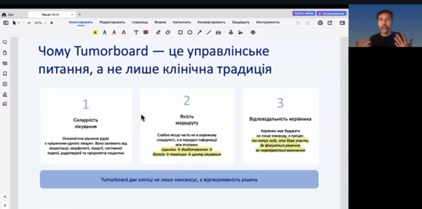 Під керівництвом 8 провідних українських та міжнародних експертів зі США, Великобританії та Франції слухачі опрацювали критично важливі для сучасного керівника теми: «Екосистема eHealth та цифрова трансформація», «Законодавче регулювання дистанційної допомоги», «Використання штучного інтелекту та телемоніторингу», «Міждисциплінарна взаємодія (зокрема, формат tumor boards)».